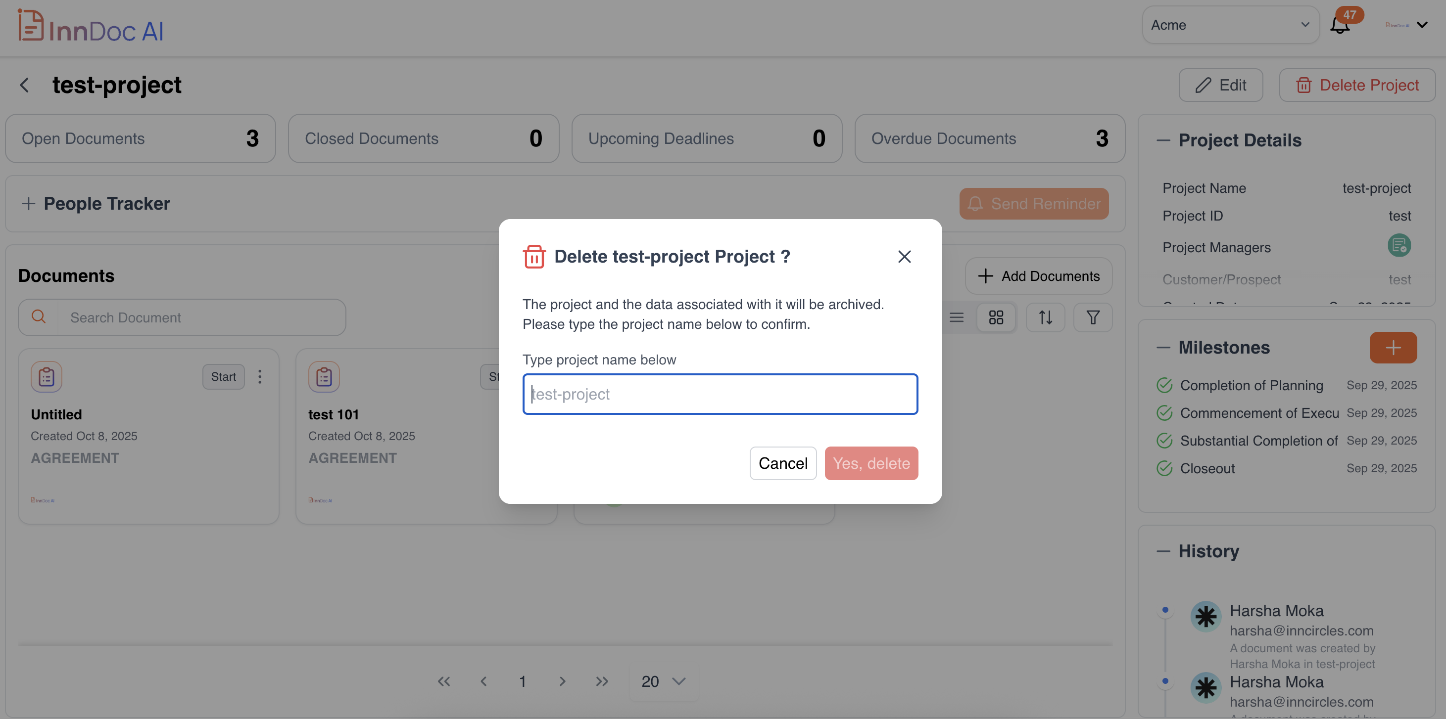 Enter the Project Name for confirmation.