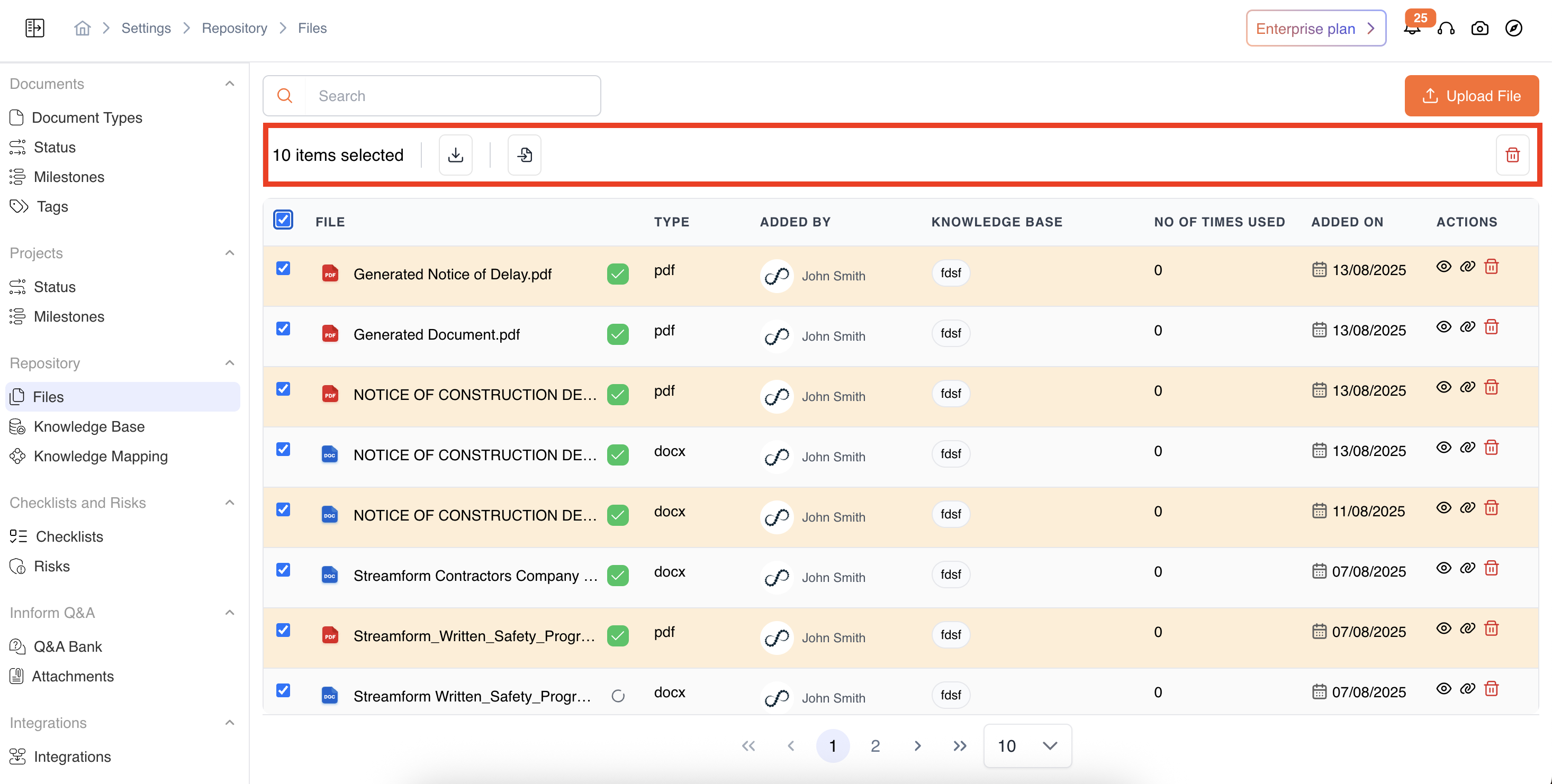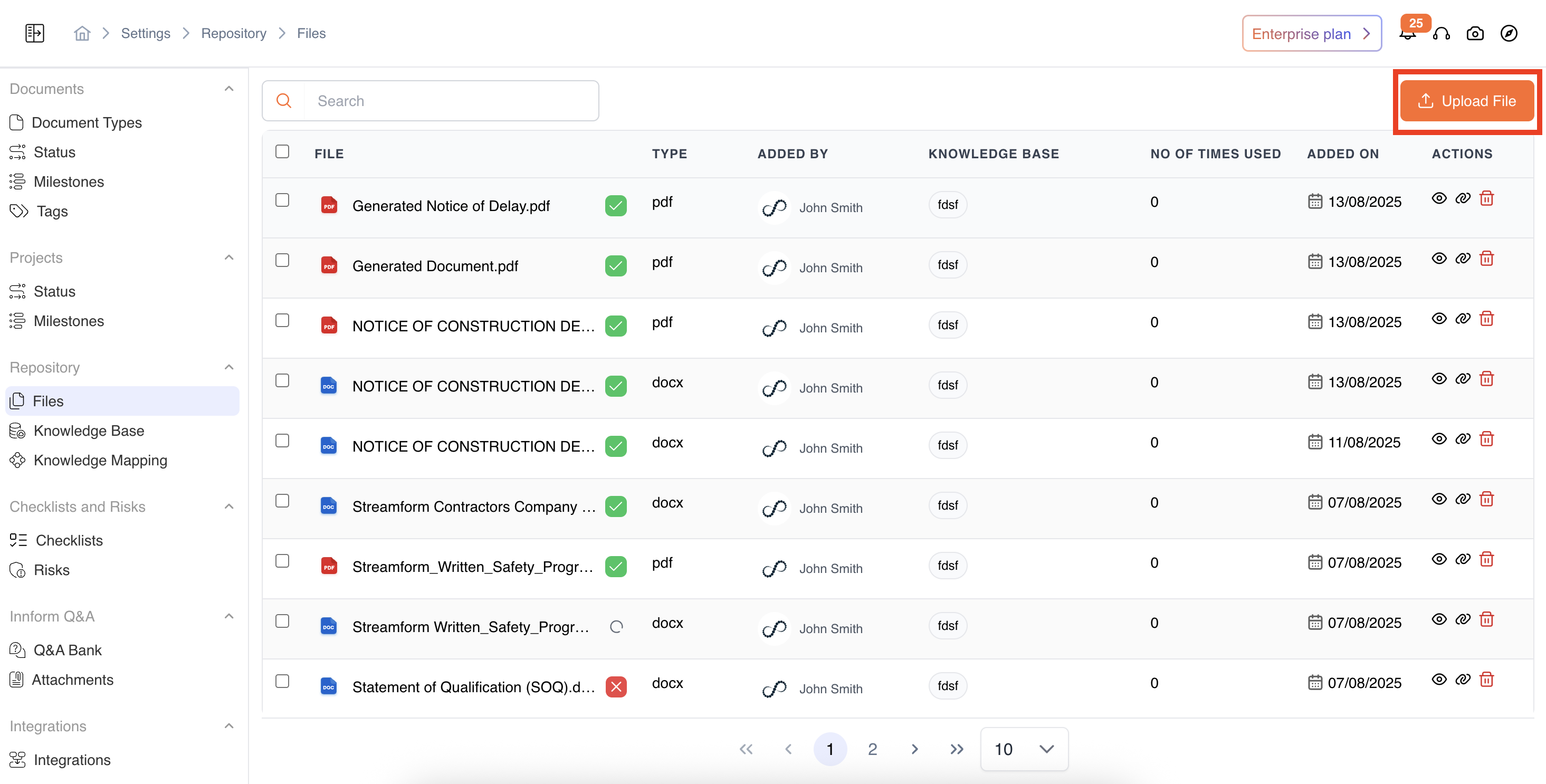 - Uploaded files are automatically added to the list and metadata is tracked.