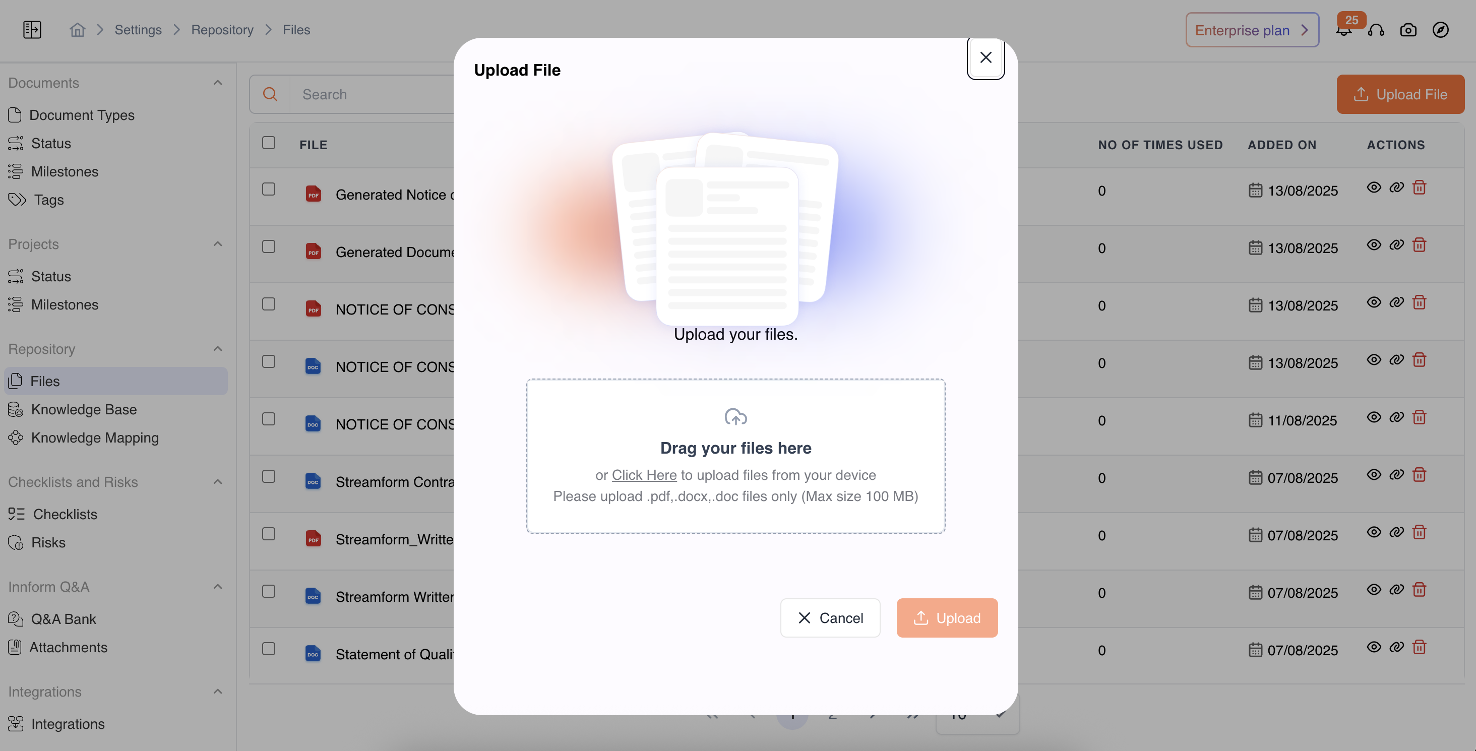 - Select one or multiple documents from your system (PDF or Docx supported)