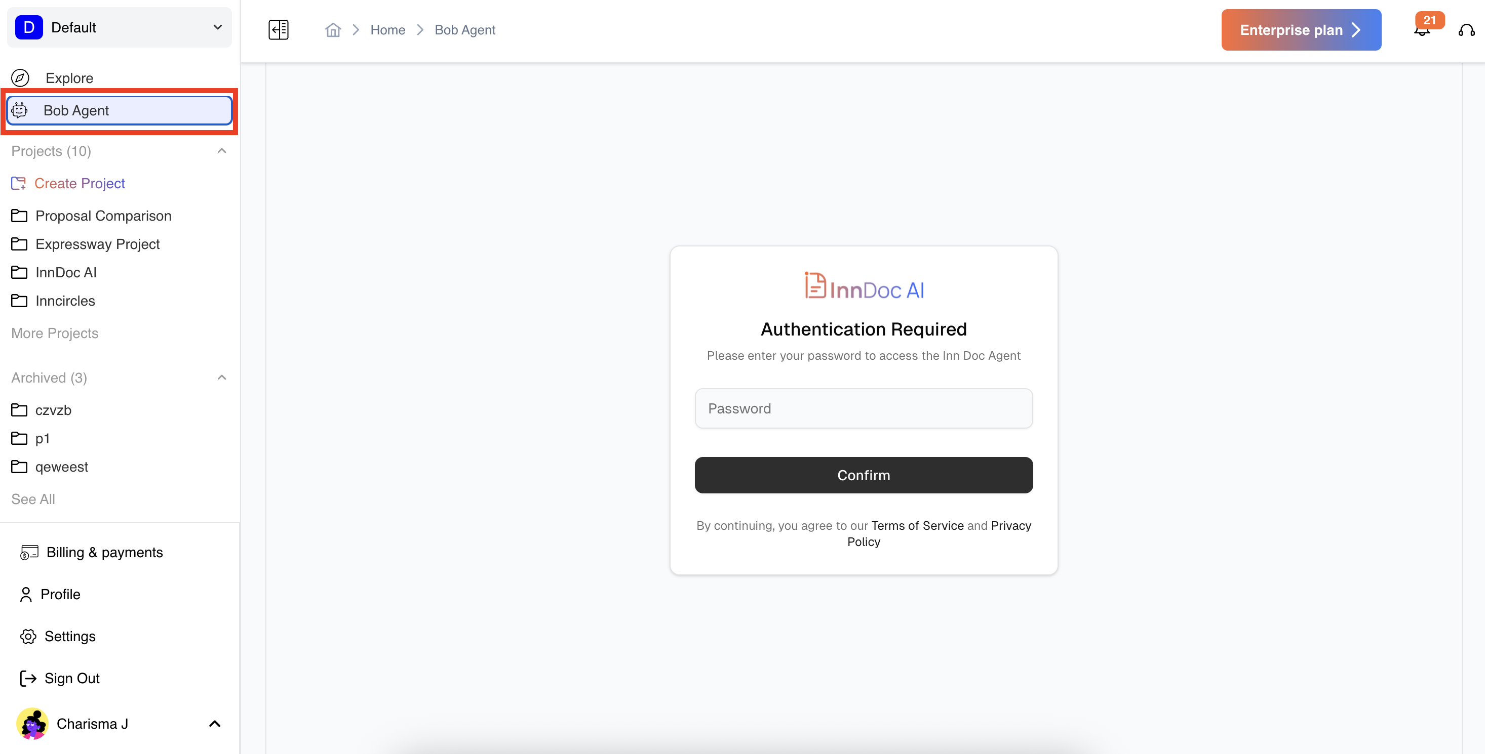 - Navigate to the left-hand sidebar in your workspace. Click on Bob Agent to launch the interface.