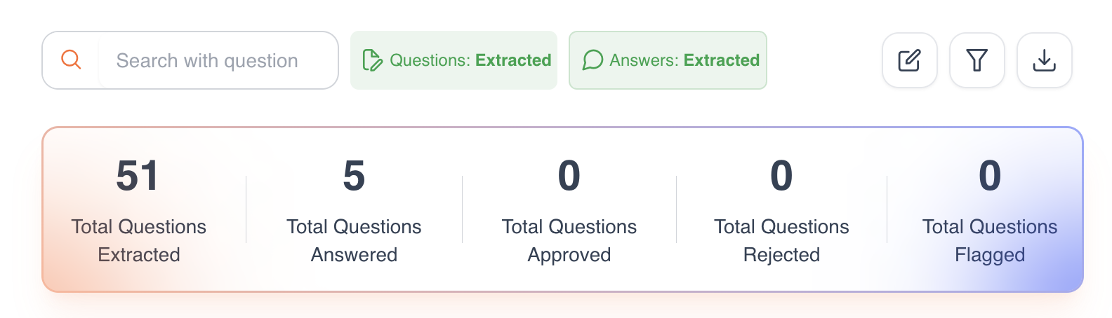 Track how many answers have been submitted, approved, rejected, or flagged.