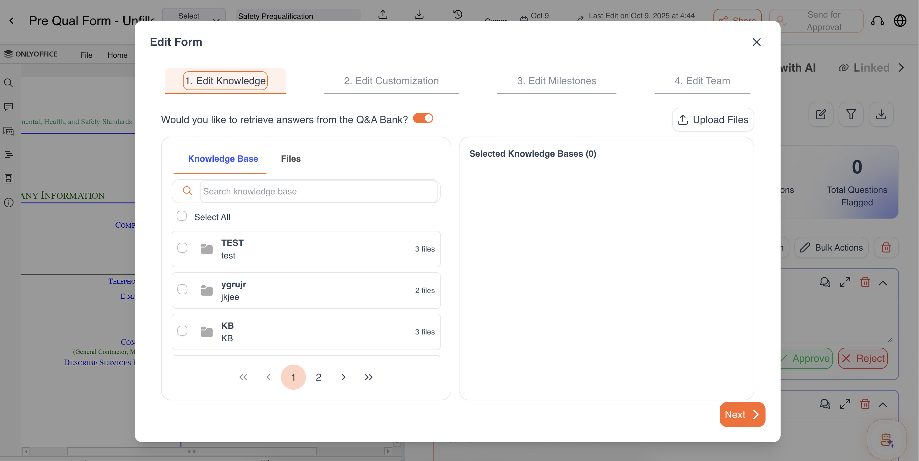 Edit Knowledge Bases – Add new files/ knowledge bases or remove any if not needed