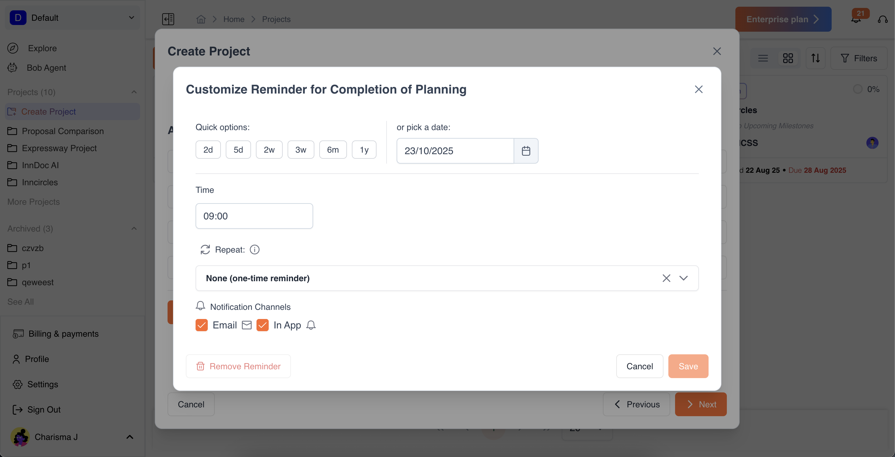 - Set Reminders: Choose the reminder date and notification channel (email or in-app).