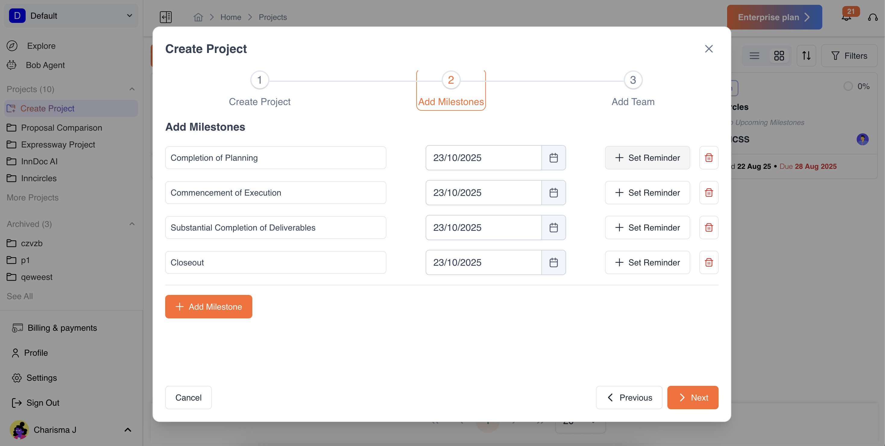 - Edit Milestones: Update milestones’ due dates or details anytime during project/document creation.